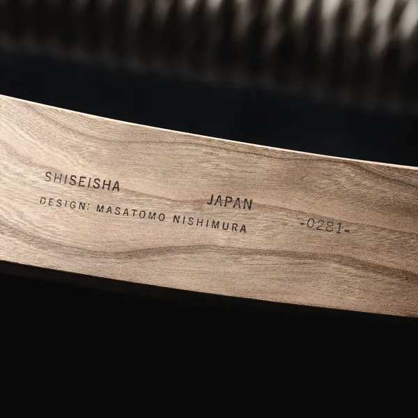 すべての椅子の左アームの裏側には、スタンプで製作番号を刻印しています。 これは単なる記録ではありません。私たちがこの椅子を生み出した「責任の証」であり、将来メンテナンスが必要になったとき、いつでも作り手が特定できる「安心の約束」です。 世界に一脚、あなただけの椅子として、末永くご愛用ください。