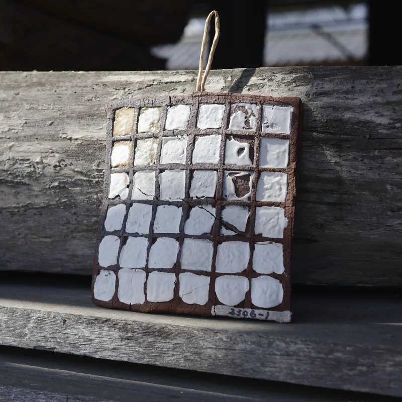 なかま土の素地に、この灰を化粧土として施し、さらに同じ灰を用いたマット釉で優しく包み込みました。決して均一ではない、赤土から透けるような白化粧の表情は、役目を終えた木が土へと還り、再び美しい道具へと生まれ変わった証です。